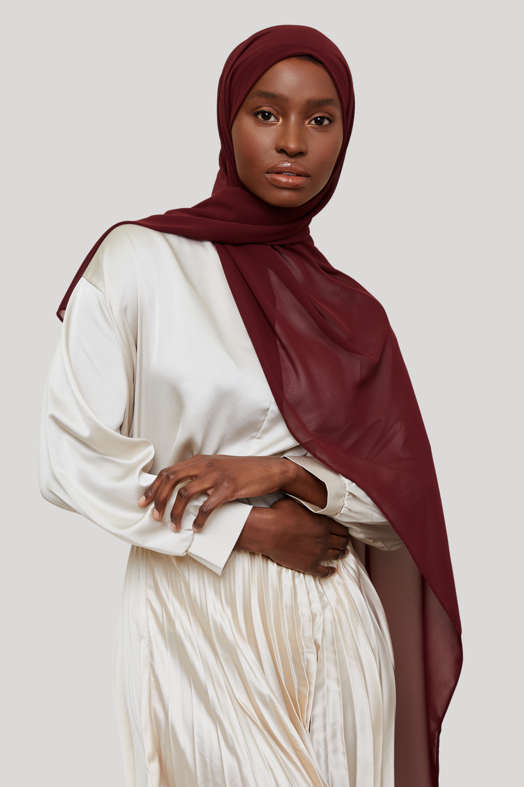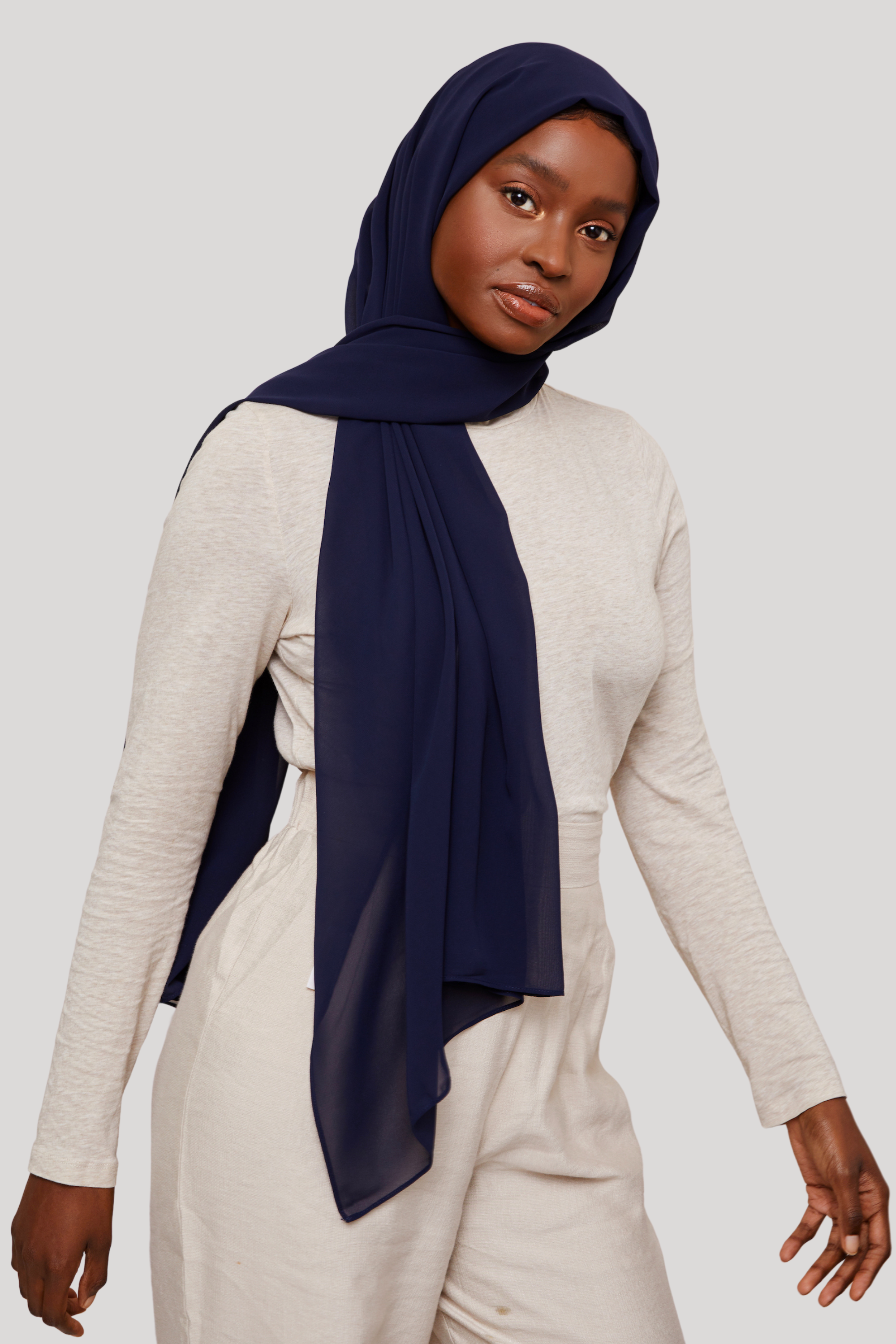 Luxury chiffon hijabs are the perfect choice if you are looking for a lightweight, long-lasting luxurious hijab that drapes like a dream. It fits and falls so beautifully and isn't the least bit bulky. If you like a sleek look finish, hate ironing and want a really high-quality chiffon hijab, our luxury chiffon hijab will become your favorite.